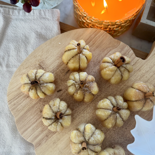 If fall entertaining had a mascot, it would be these Pumpkin-Shaped Apricot Brie Bites. Buttery puff pastry wrapped around creamy brie and sweet apricot jelly, baked until golden, and finished with a sprinkle of cinnamon sugar—they’re as festive as they are delicious. The best part? They look like little pumpkins thanks to some simple twine and a cinnamon stick “stem.”