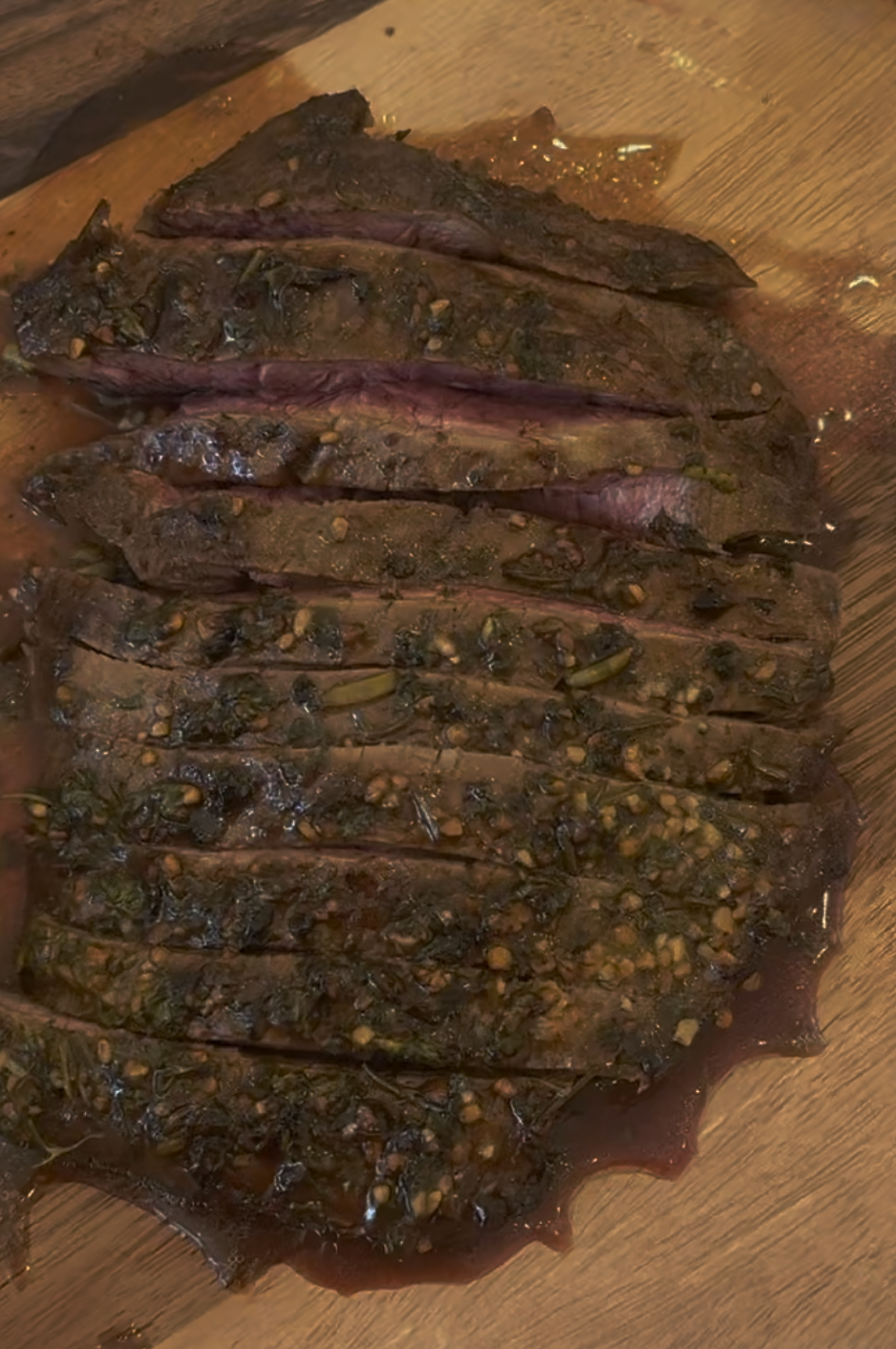 - Grill or sear the steak over high heat until desired doneness is reached. Let rest before slicing against the grain.